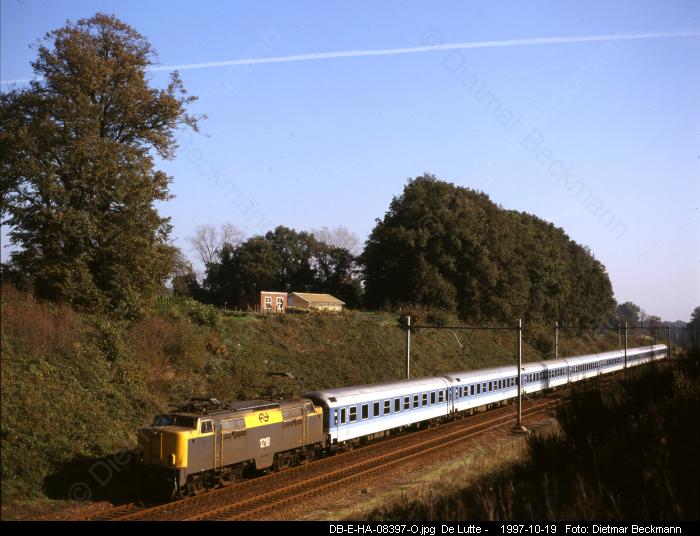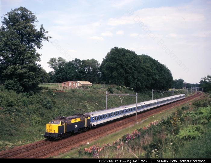 Zum Vergrößern bitte das gewünschte Bild anklicken! Foto-Serie E005 (Typ 20)Altbau-E-Loks in den Niederlanden 1997-2000Eisenbahnfotos von Dietmar BeckmannBis 1998 setzte die NiederländischeStaatsbahn (NS) ihre Altbau-E-Loksaus den 1950er Jahren noch vorGüter-, Intercity- und internationalenSchnellzügen ein. Neben den von Alsthom zwischen1950 und 1956 gebauten Loks derSerien 1100 (analog SNCF BB8100)und 1300 (analog SNCF CC7100)waren die 25 Maschinen der Serie1200 besonders markant und inEuropa einzigartig. Die wuchtigen, 108Tonnen schweren “Amerikaner”wurden nach einem Entwurf vonBaldwin zwischen 1951 und 1953 beiWerkspoor in Lizenz gefertigt.Größere Baugruppen kamen sogarper Schiff aus den USA, dieDrehgestelle lieferte Baldwin, elek-trische Ausrüstungen Westinghouse.Eisenbahnfotos von Dietmar BeckmannMittelformat-DiaMittelformat-DiaMittelformat-DiaMittelformat-DiaMittelformat-DiaMittelformat-DiaMittelformat-DiaMittelformat-DiaMittelformat-DiaMittelformat-DiaMittelformat-DiaMittelformat-DiaMittelformat-DiaMittelformat-DiaMittelformat-DiaMittelformat-DiaMittelformat-DiaMittelformat-DiaMittelformat-DiaMittelformat-DiaMittelformat-DiaMittelformat-DiaMittelformat-DiaMittelformat-Dia