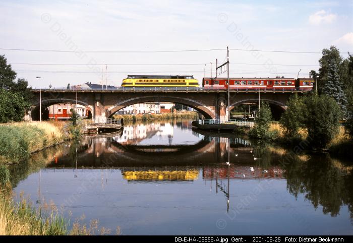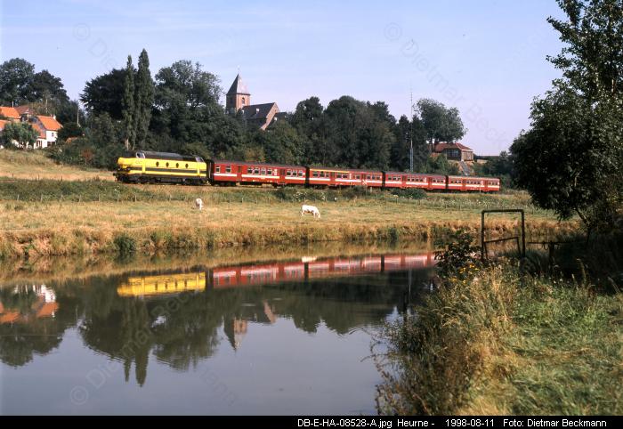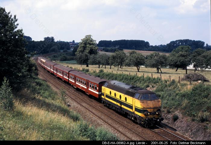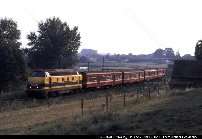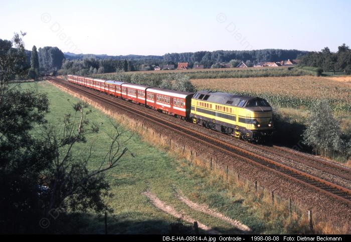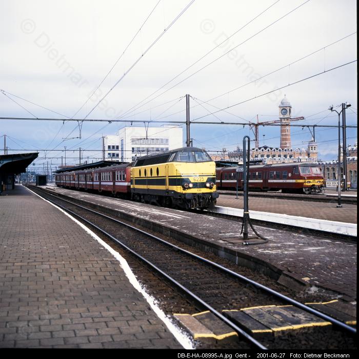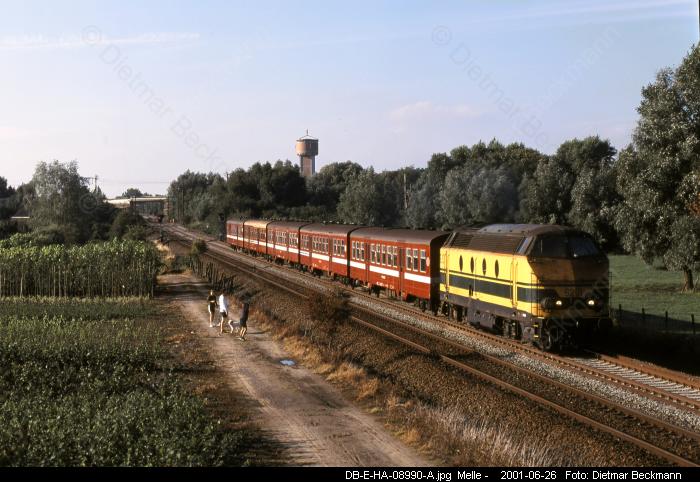 Zum Vergrößern bitte das gewünschte Bild anklicken! Foto-Serie E006 (Typ 20)Dieselzüge rund um Gent 1998-2001Eisenbahnfotos von Dietmar BeckmannDie Regionalzüge (Stoptreinen) auf dennicht elektrifizierten Strecken rund umGent bestanden bis zum Jahre 2001fast ausnahmlos aus stilreinen Wagen-garnituren mit M2-Wagen (Baujahr1958-1960), die meist von Dieselloksder Baureihe 62 (Baujahr 1961-1966)gezogen wurden. Sie fuhren insbesondere nach Eeklo,Ronse und Geraardsbergen. Seltenerkamen hier auch die markanten, wegenihrem tiefen Blubbern von Weitem zuhörenden Loks der Serie 51 (Baujahr1961-1963) zum Einsatz.Dieselgeführter Starzug an Wochen-enden im Sommer war aber der aus 8M2-Wagen und einer 51 gebildete ICTvon Aulnoye in Frankreich, der überMons, Ath, Zottegem und Gent nachBlankenberge an die Nordsee fuhr.Eisenbahnfotos von Dietmar BeckmannMittelformat-DiaMittelformat-DiaMittelformat-DiaMittelformat-DiaMittelformat-DiaMittelformat-DiaMittelformat-DiaMittelformat-DiaMittelformat-DiaMittelformat-DiaMittelformat-DiaMittelformat-DiaMittelformat-DiaMittelformat-DiaMittelformat-DiaMittelformat-DiaMittelformat-DiaMittelformat-DiaMittelformat-DiaMittelformat-Dia Digital