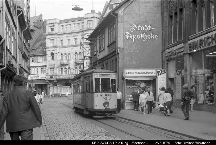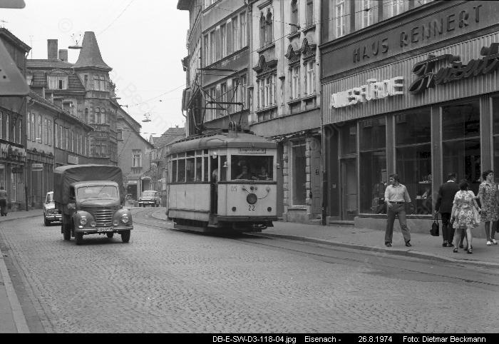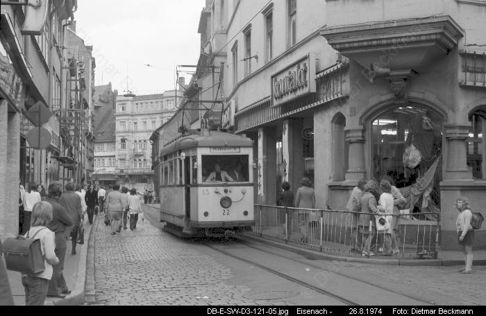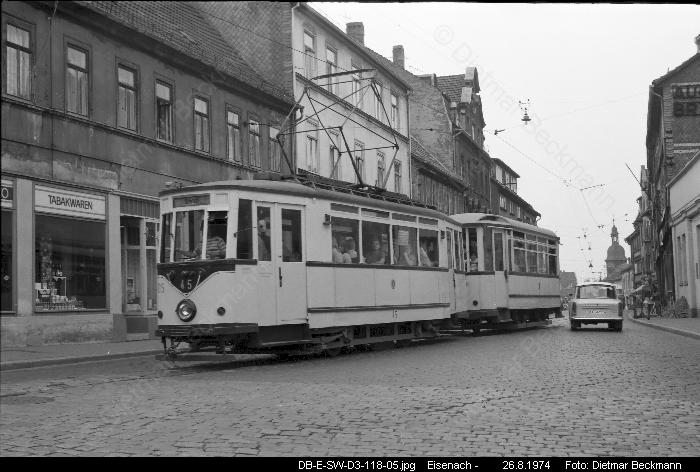 Zum Vergrößern bitte das gewünschte Bild anklicken! Foto-Serie S001 (Typ 25)Straßenbahnfotos aus EisenachAlle Fotos dieser Serie vom dichtenStraßenbahnverkehr in Eisenach sindin den Jahren 1973 und 1974 auf dem Weg zu den Dampflokomotiven im Thüringer Wald entstanden.Kleinbild-NegativKleinbild-NegativKleinbild-NegativKleinbild-NegativEisenbahnfotos von Dietmar BeckmannEisenbahnfotos von Dietmar Beckmann